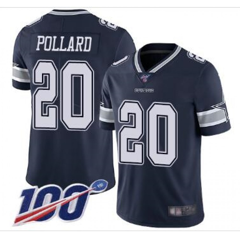 Men's Dallas Cowboys #20 Tony Pollard Navy 2019 100th Season Vapor Untouchable Limited Stitched NFL Jersey
