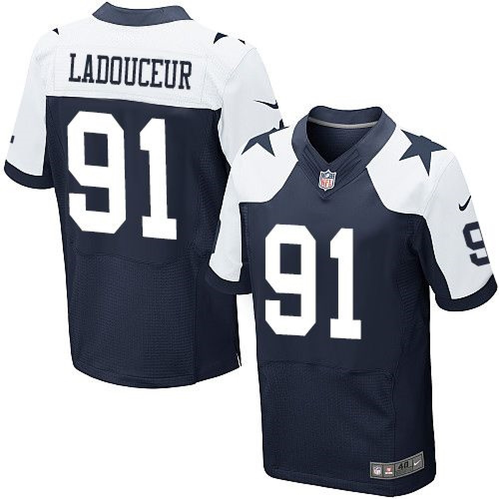 Nike Cowboys #91 L. P. Ladouceur Navy Blue Thanksgiving Throwback Men's Stitched NFL Elite Jersey