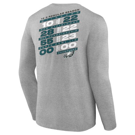 Men's Philadelphia Eagles Heather Gray Super Bowl LIX Champions Counting Points Score Long Sleeve T-Shirt