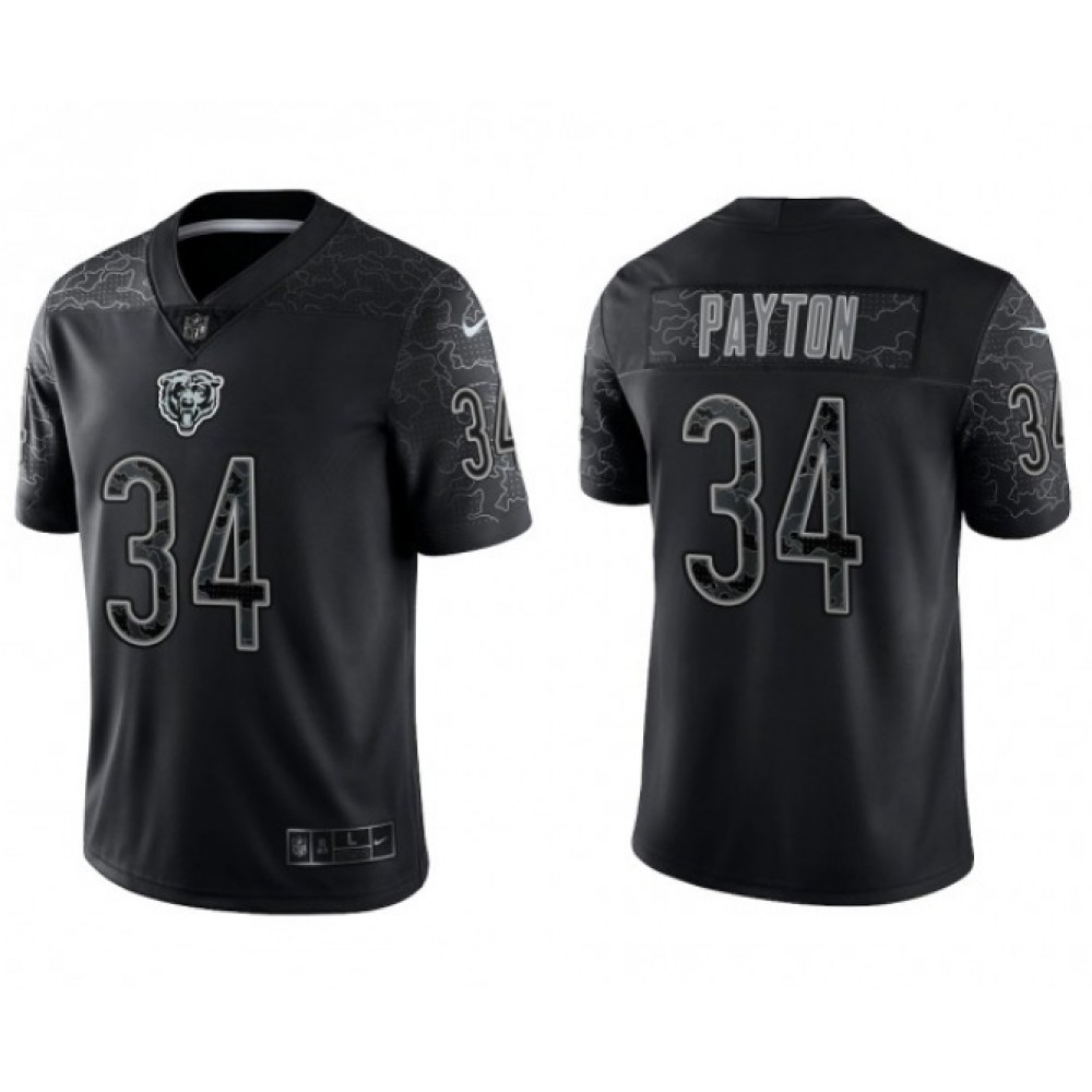 Men's Chicago Bears #34 Walter Payton Black Reflective Limited Stitched Football Jersey