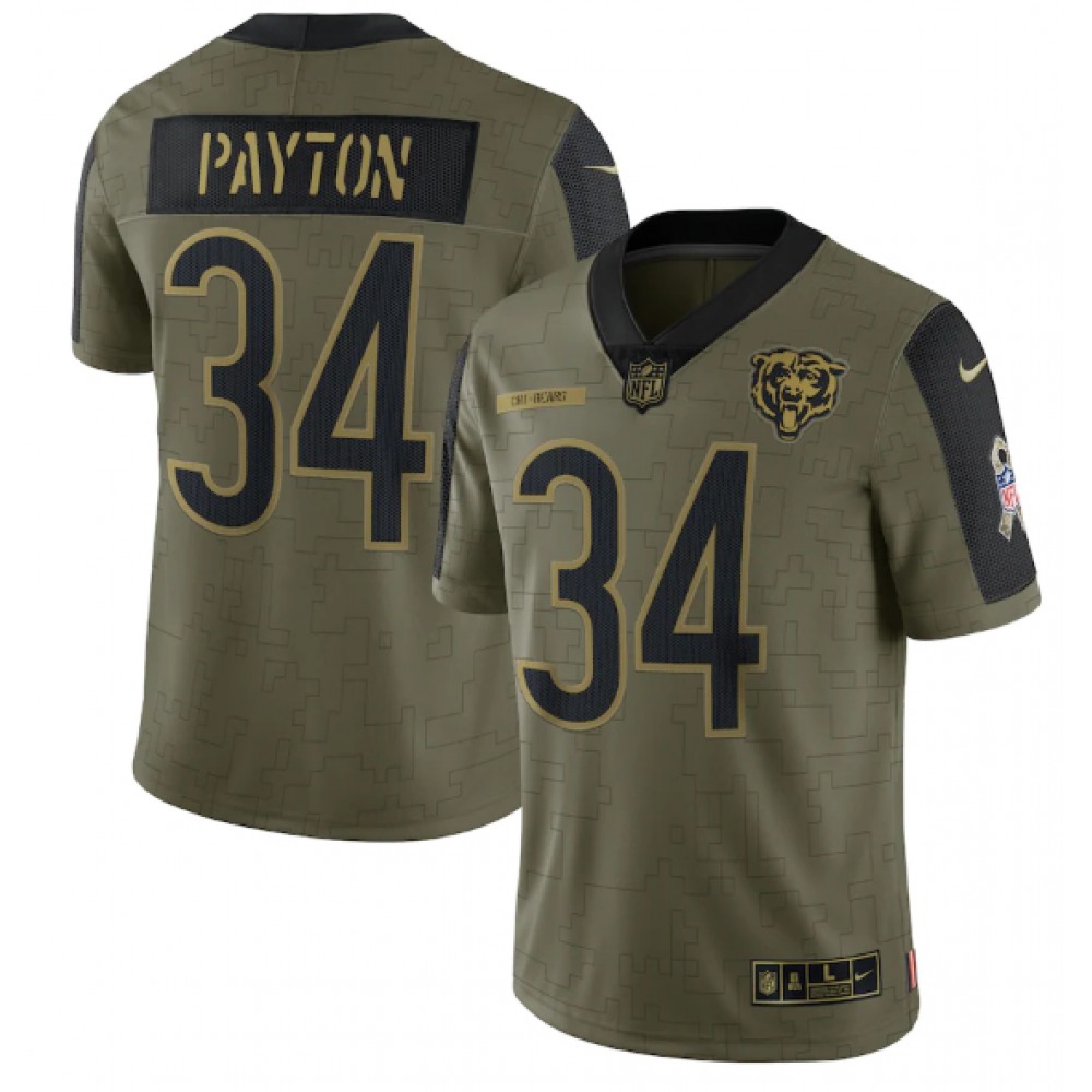 Men's Chicago Bears #34 Walter Payton 2021 Olive Salute To Service Limited Stitched Jersey