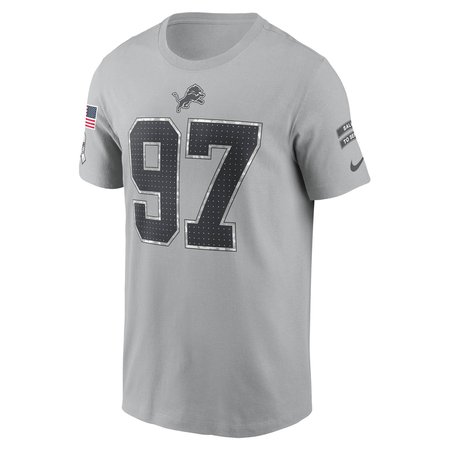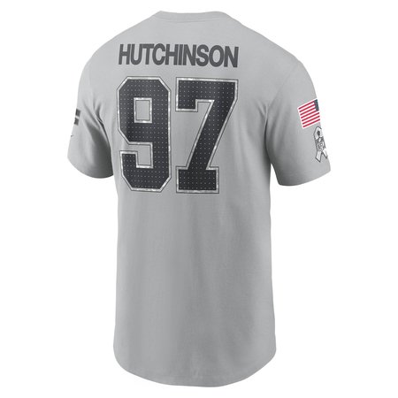 Men's Detroit Lions Aidan Hutchinson Nike Gray 2024 Salute To Service Name & Number T-Shirt