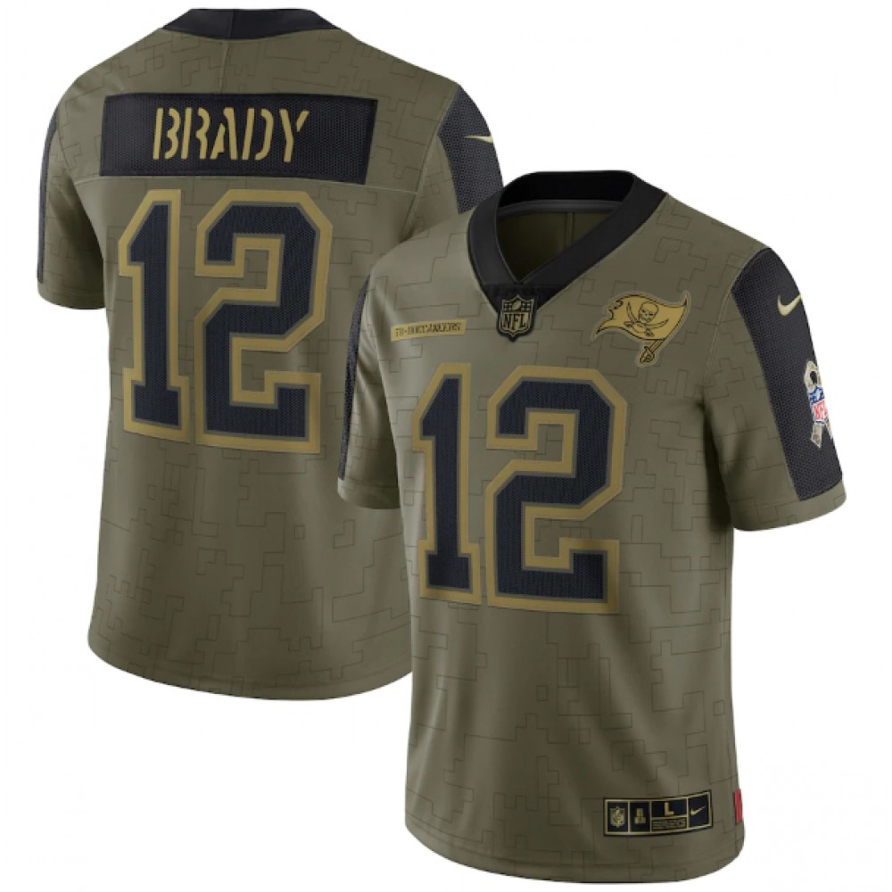 Men's Tampa Bay Buccaneers #12 Tom Brady 2021 Olive Salute To Service Limited Stitched Jersey