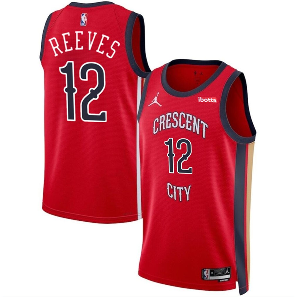 Men's New Orleans Pelicans #12 Antonio Reeves Red 2024 Draft Statement Edition Stitched Basketball Jersey