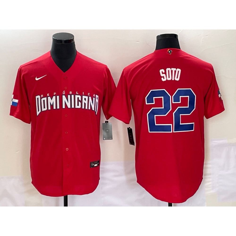 Men's Dominican Republic Baseball #22 Juan Soto 2023 Red World Baseball Classic Stitched Jersey