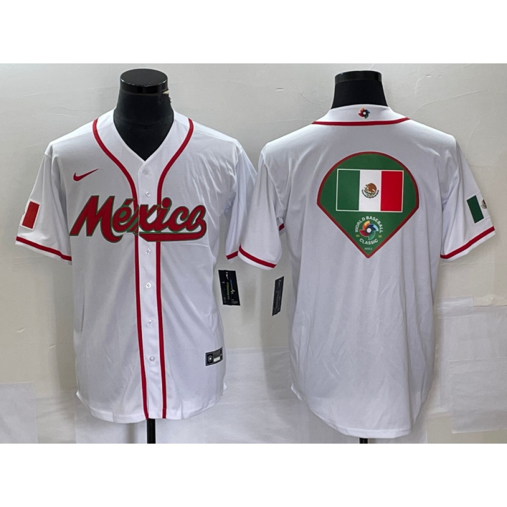 Men's Mexico Baseball 2023 White World Baseball Classic Team Big Logo Stitched Jersey
