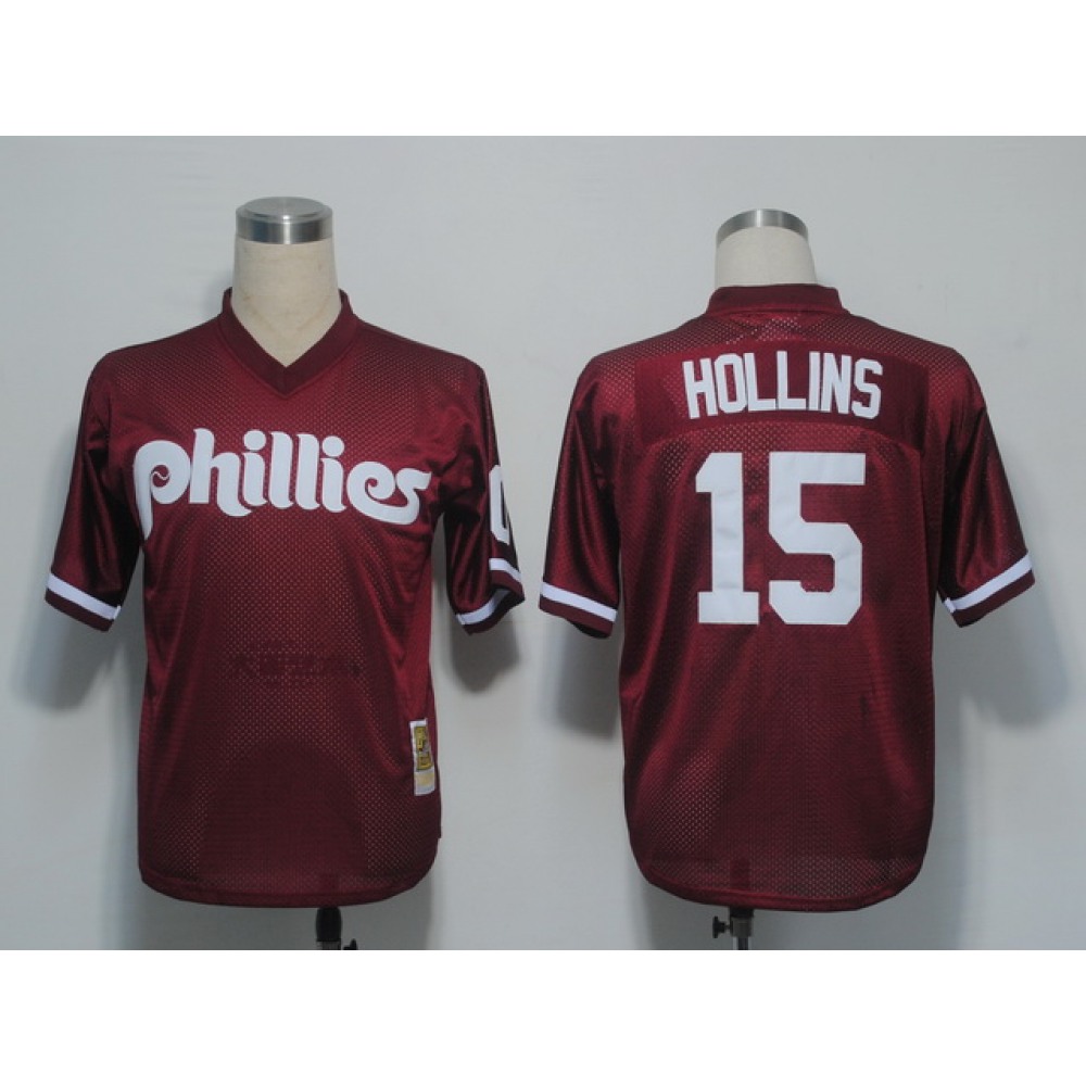 Mitchell and Ness 1991 Phillies #15 Dave Hollins Red Stitched MLB Jersey