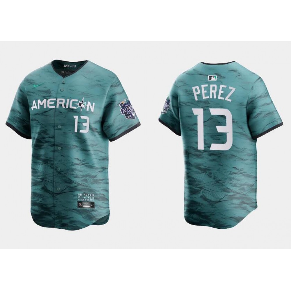 Men's Kansas City Royals #13 Salvador Perez Teal 2023 All-star Cool Base With Patch Stitched Baseball Jersey