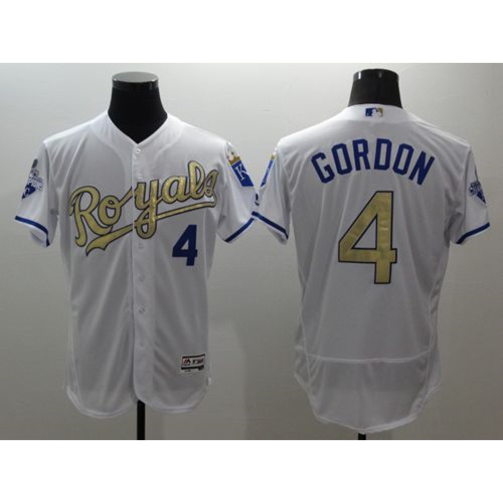 Royals #4 Alex Gordon White 2015 World Series Champions Gold Program FlexBase Authentic Stitched MLB Jersey