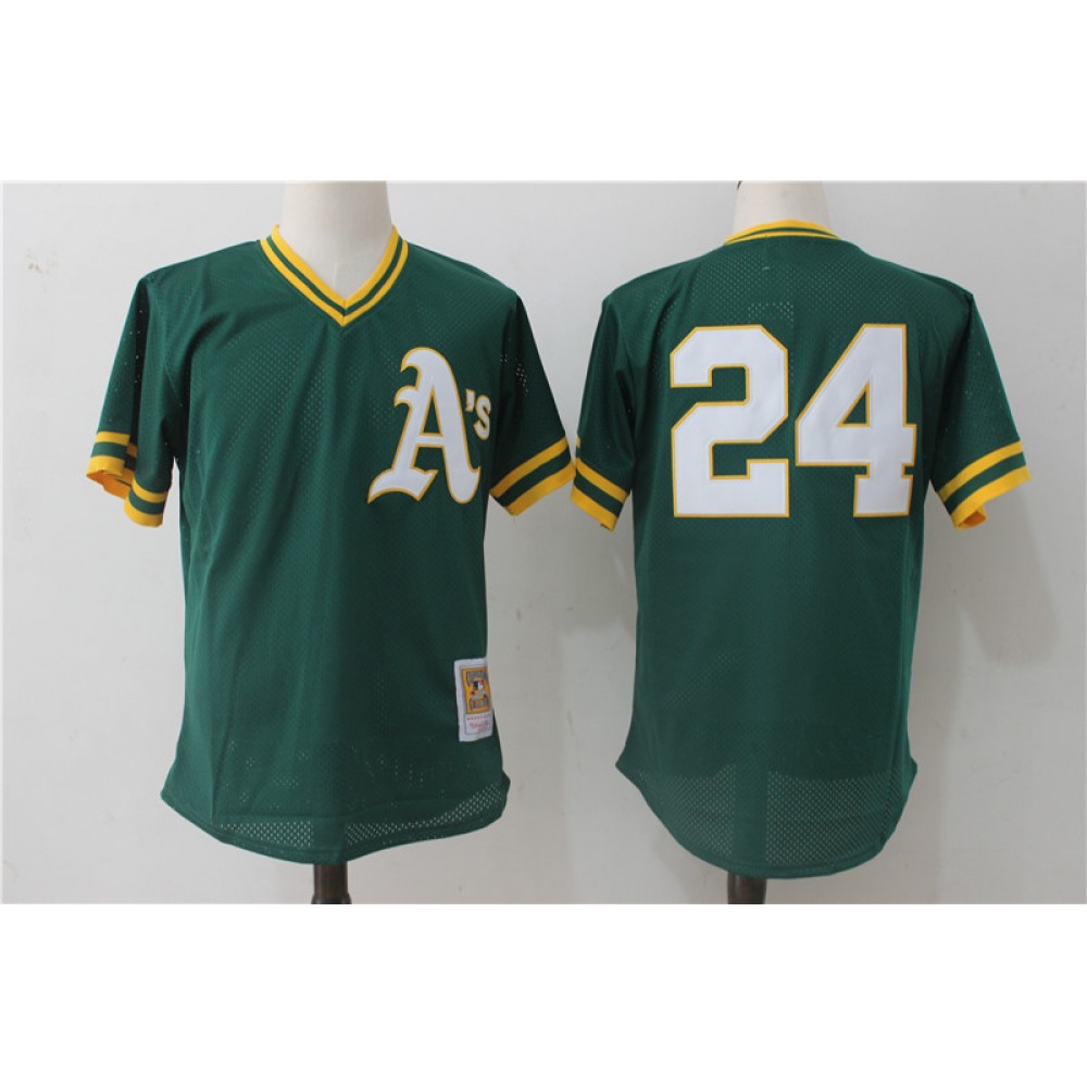 Men's Oakland Athletics #24 Rickey Henderson Mitchell & Ness Green 1991 Cooperstown Mesh Batting Practice Stitched MLB Jersey
