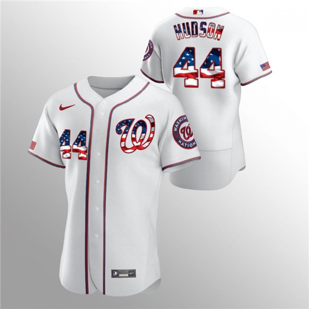 Men's Washington Nationals #44 Daniel Hudson White 2020 Stars & Stripes Flex Base Stitched Jersey