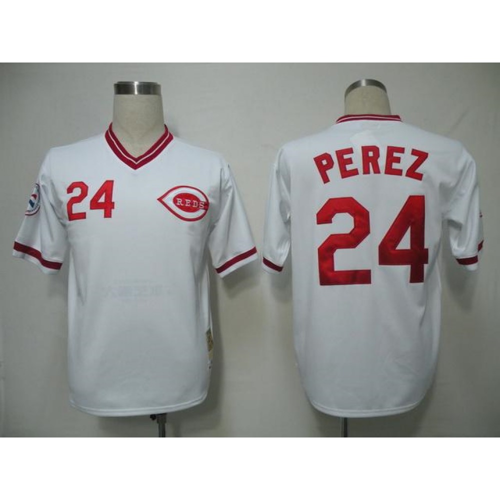 Mitchell and Ness Reds #24 Tony Perez White Throwback Stitched MLB Jersey