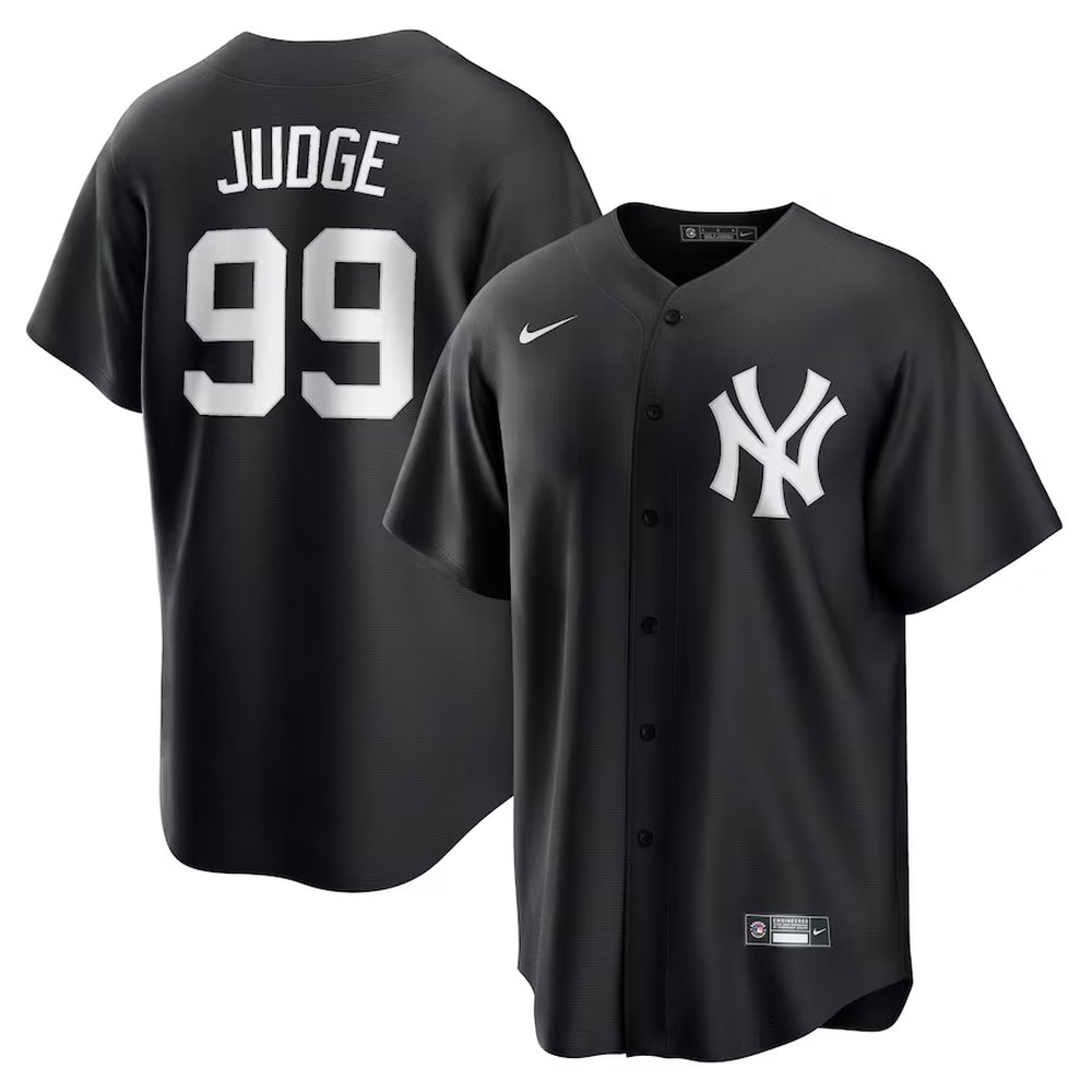 Men's New York Yankees #99 Aaron Judge Nike Black Lights Out Replica Player Jersey