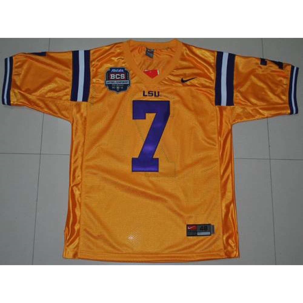 LSU Tigers #7 Tyrann Mathieu Gold 2012 BCS Championship Patch Stitched NCAA Jersey