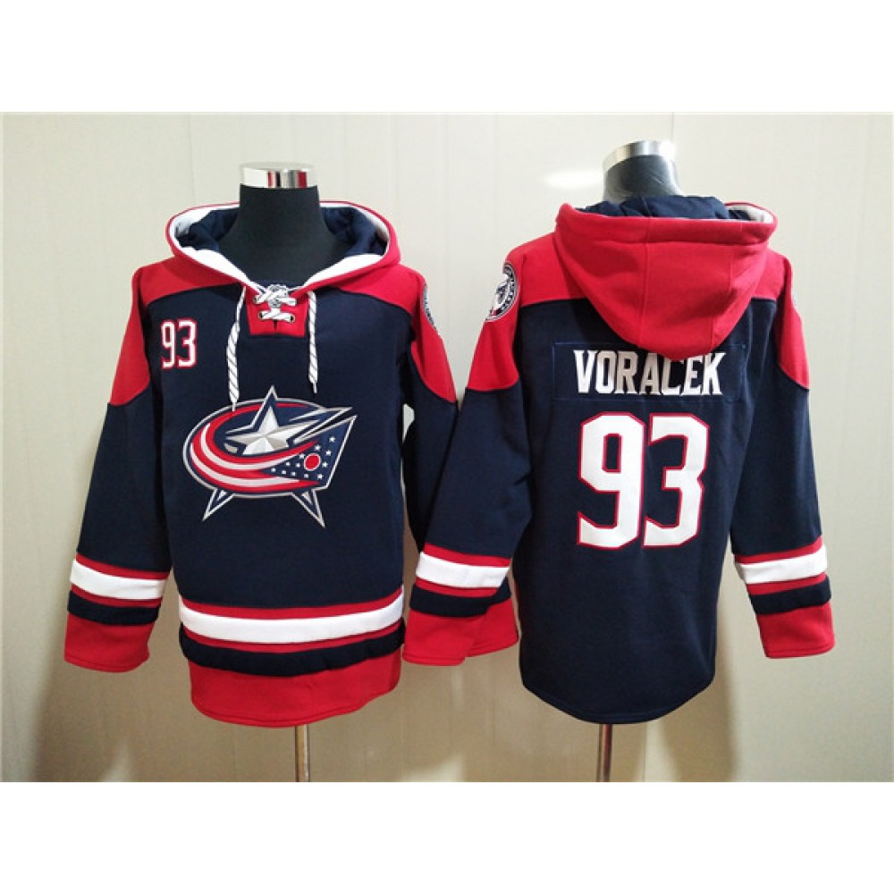 Men's Columbus Blue Jackets #93 Jakub Voracek Navy Ageless Must-Have Lace-Up Pullover Hoodie