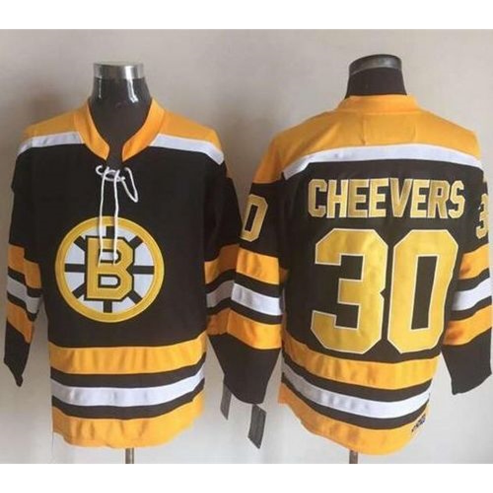Bruins #30 Gerry Cheevers Black/Yellow CCM Throwback New Stitched NHL Jersey