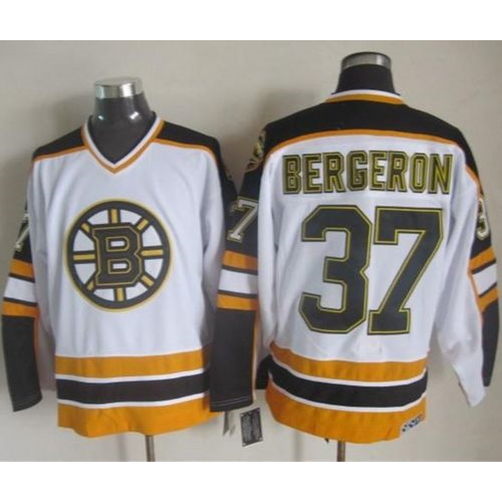 Bruins #37 Patrice Bergeron White/Black CCM Throwback Stitched NHL Jersey