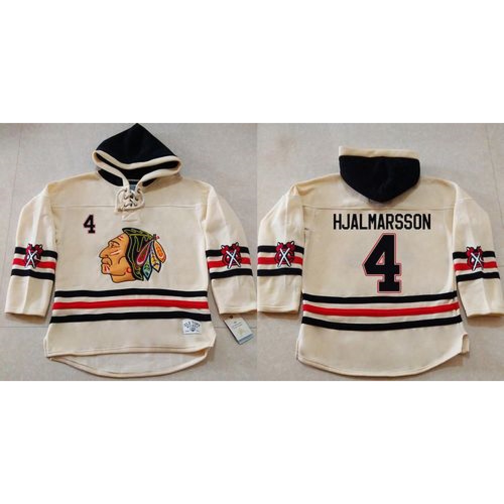 Blackhawks #4 Niklas Hjalmarsson Cream Heavyweight Pullover Hoodie Stitched NHL Jersey
