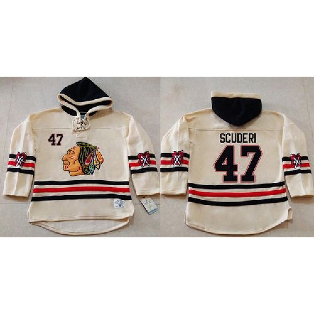 Blackhawks #47 Rob Scuderi Cream Heavyweight Pullover Hoodie Stitched NHL Jersey