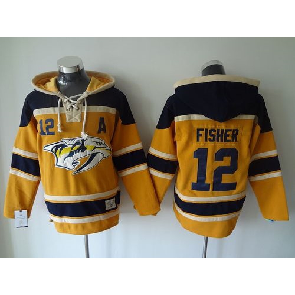Predators #12 Mike Fisher Yellow Sawyer Hooded Sweatshirt Stitched NHL Jersey