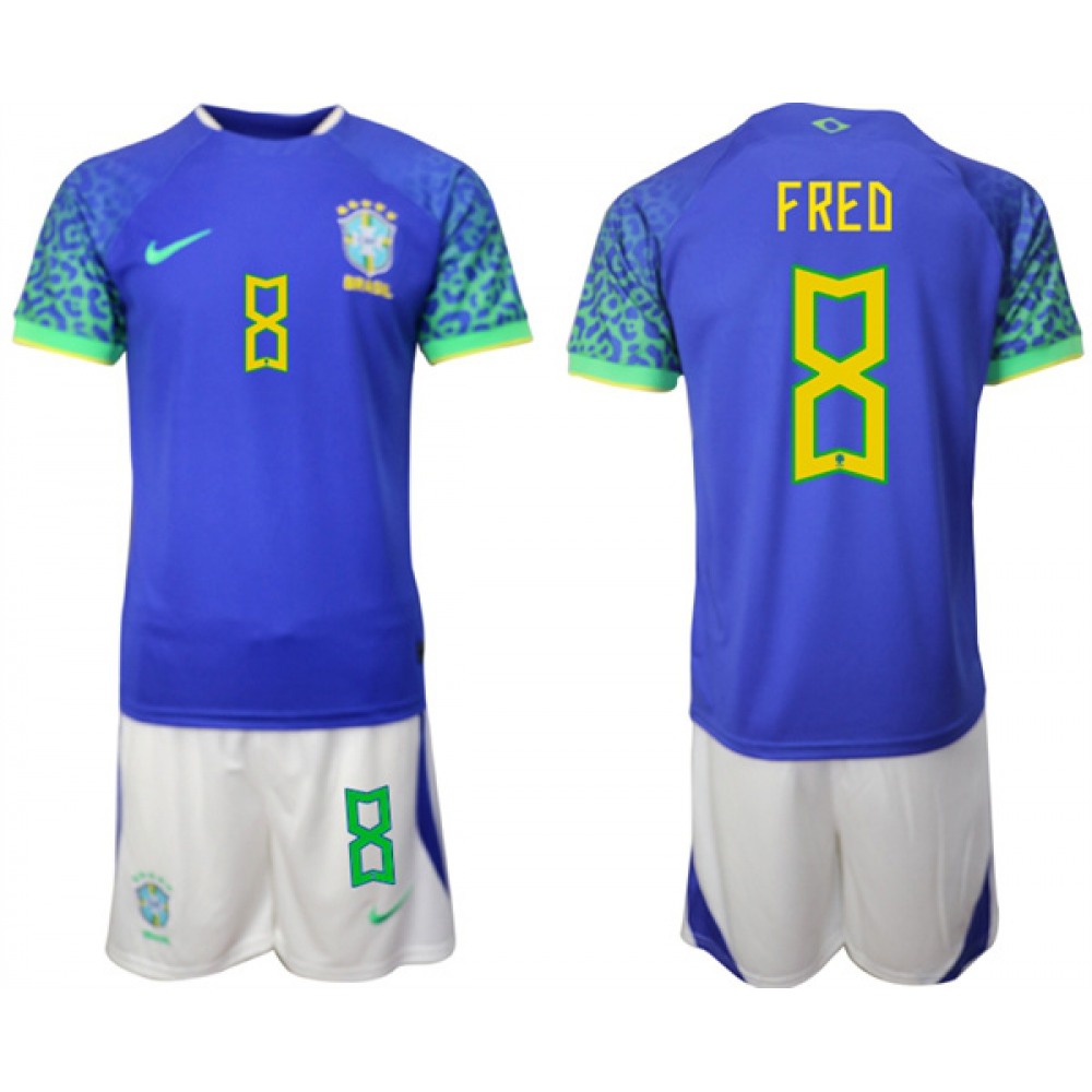 Men's Brazil #8 Fred Blue 2022 FIFA World Cup Away Soccer Jersey Suit