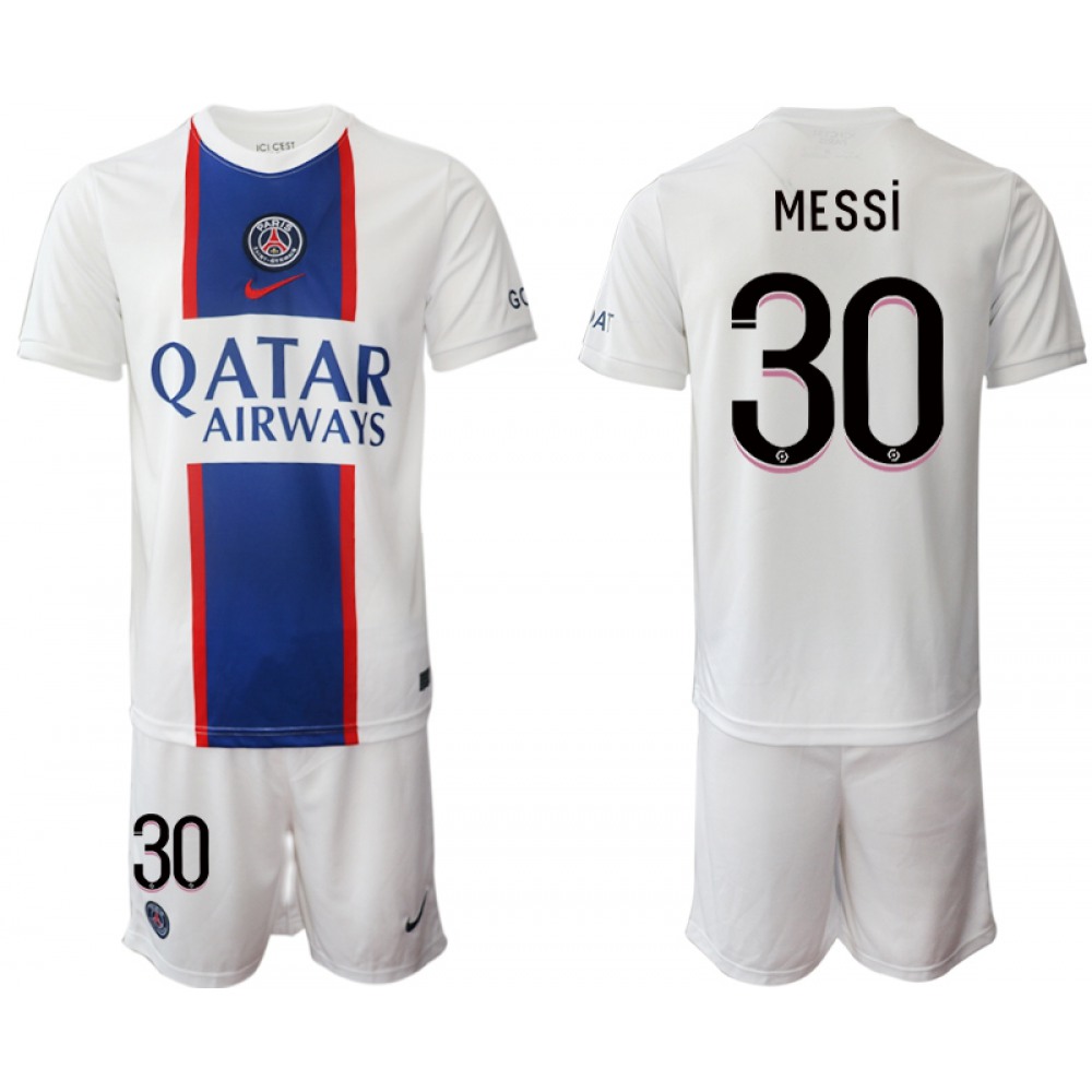 Men's Paris Saint-Germain #30 Lionel Messi 2023 White Away Soccer Jersey Suit