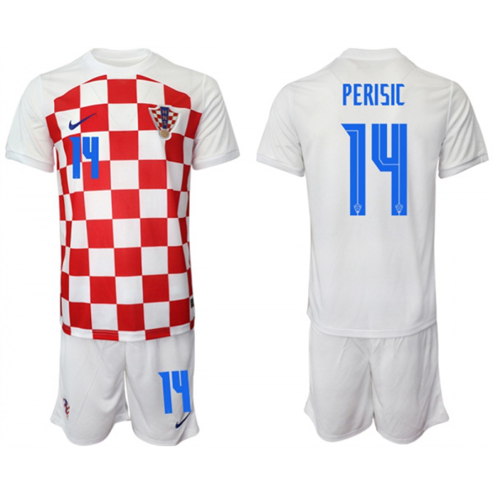 Men's Croatia #14 Perisic White Home Soccer Jersey Suit