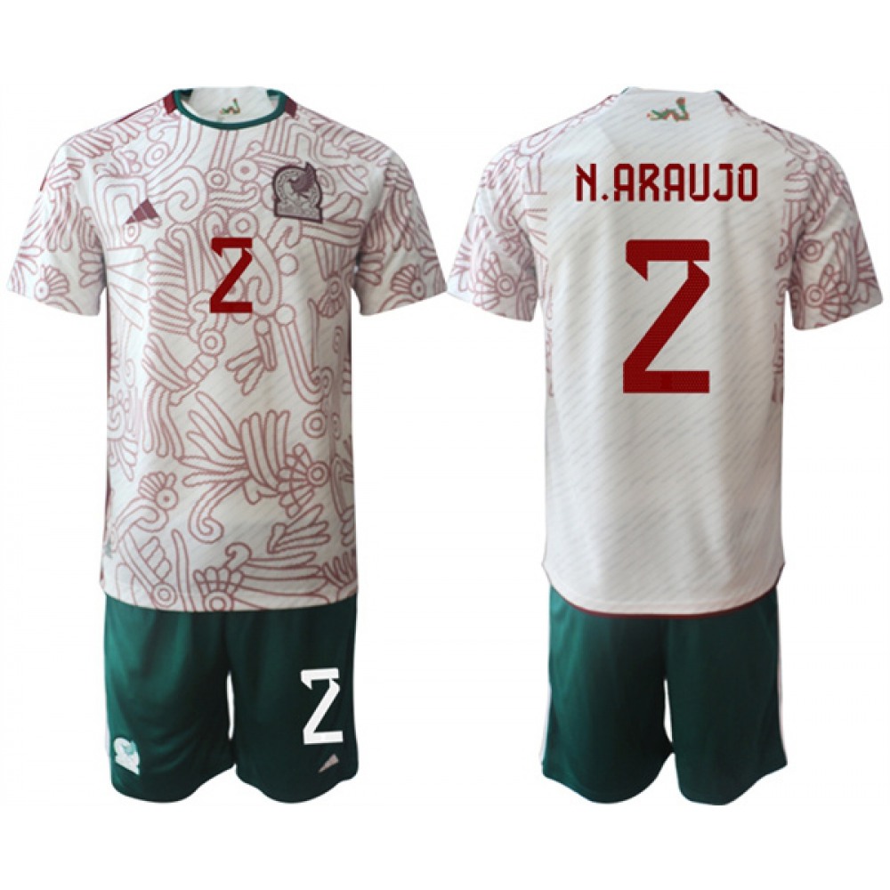 Men's Mexico #2 N.Araujo White Away Soccer Jersey Suit