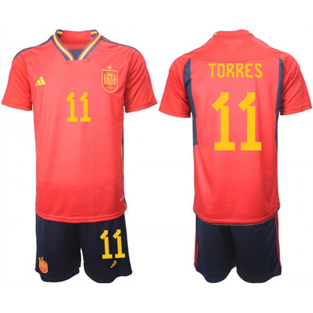 Men's Spain #11 Torres Red Home Soccer Jersey Suit