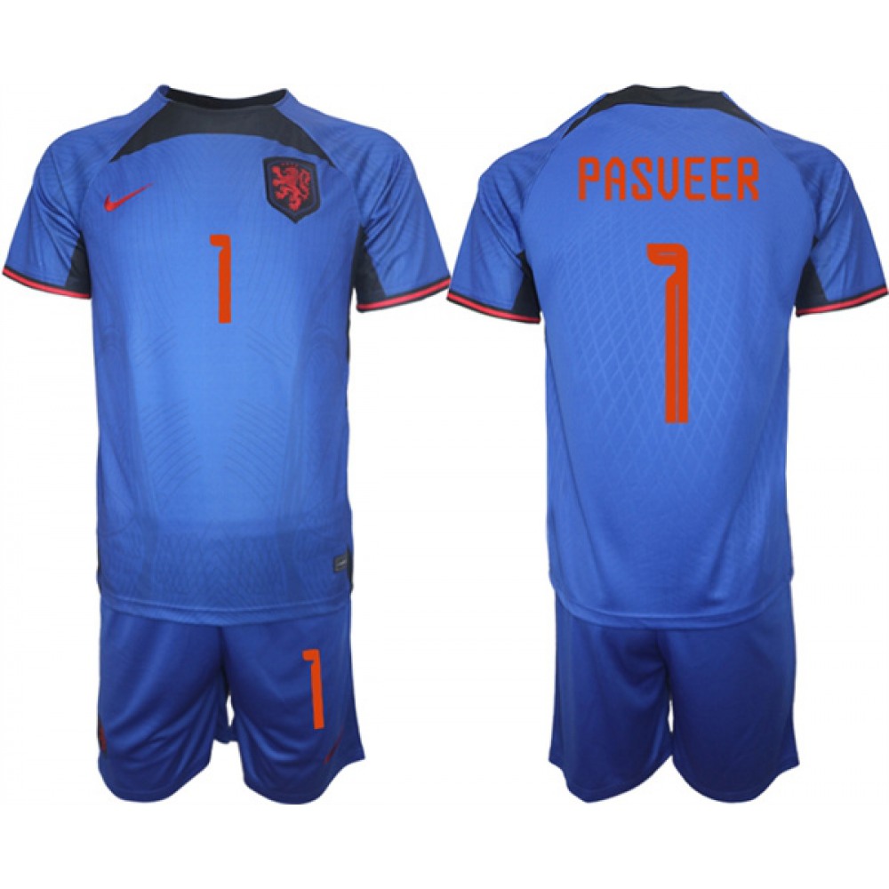 Men's Netherlands #1 Pasveer Royal Away Soccer Jersey Suit
