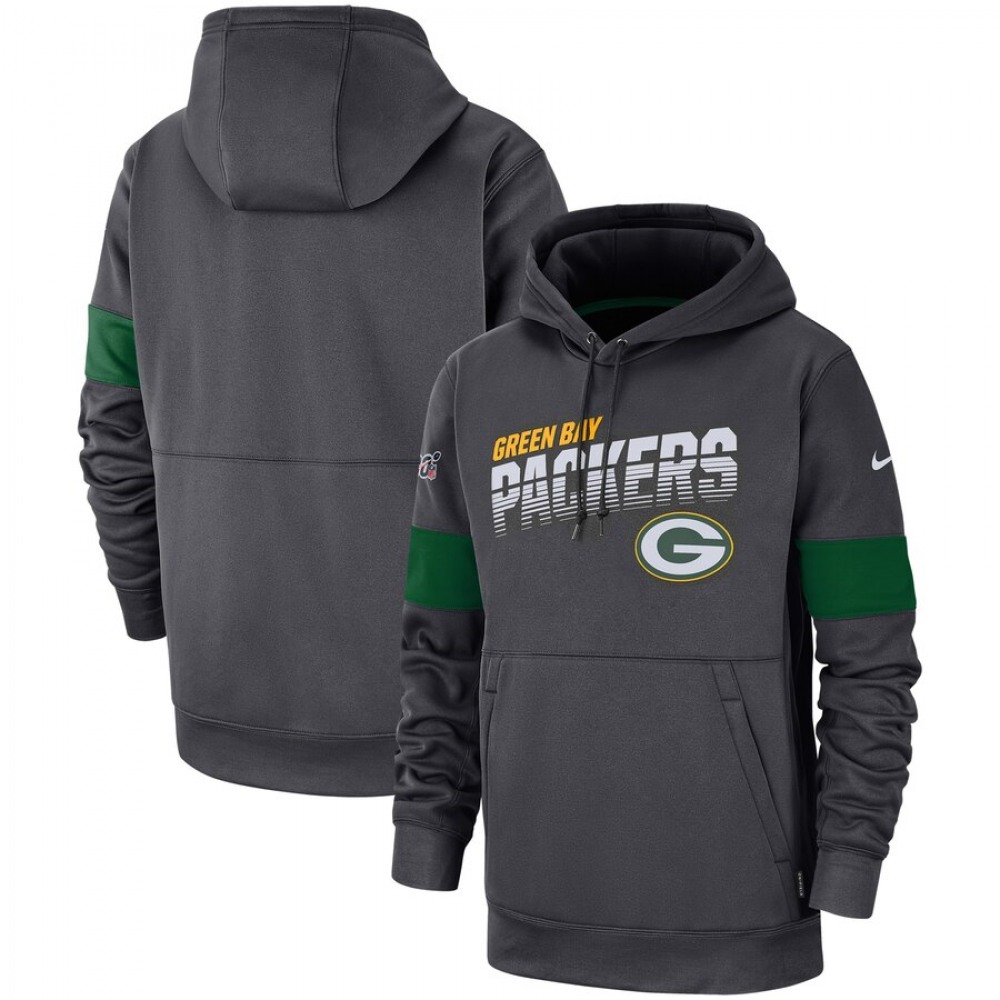 Men's Green Bay Packers 2019 Anthracite 100th Season Sideline Team Logo Performance Pullover Hoodie