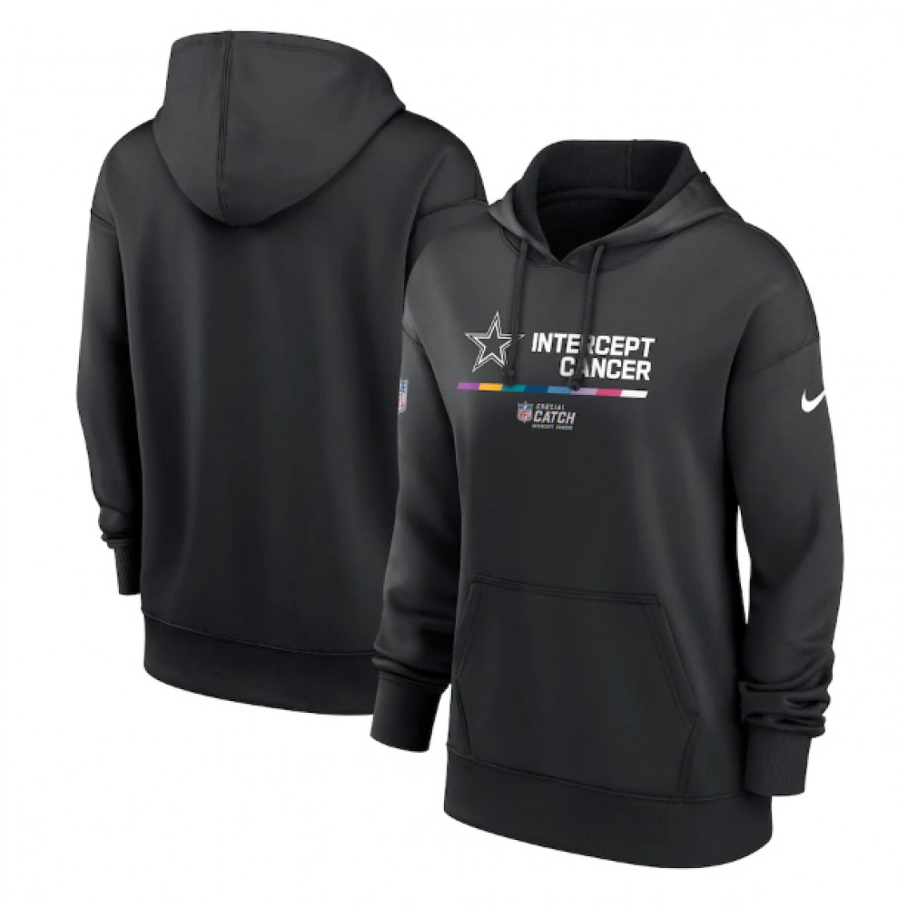 Women's Dallas Cowboys 2022 Black NFL Crucial Catch Therma Performance Pullover Hoodie(Run Small)