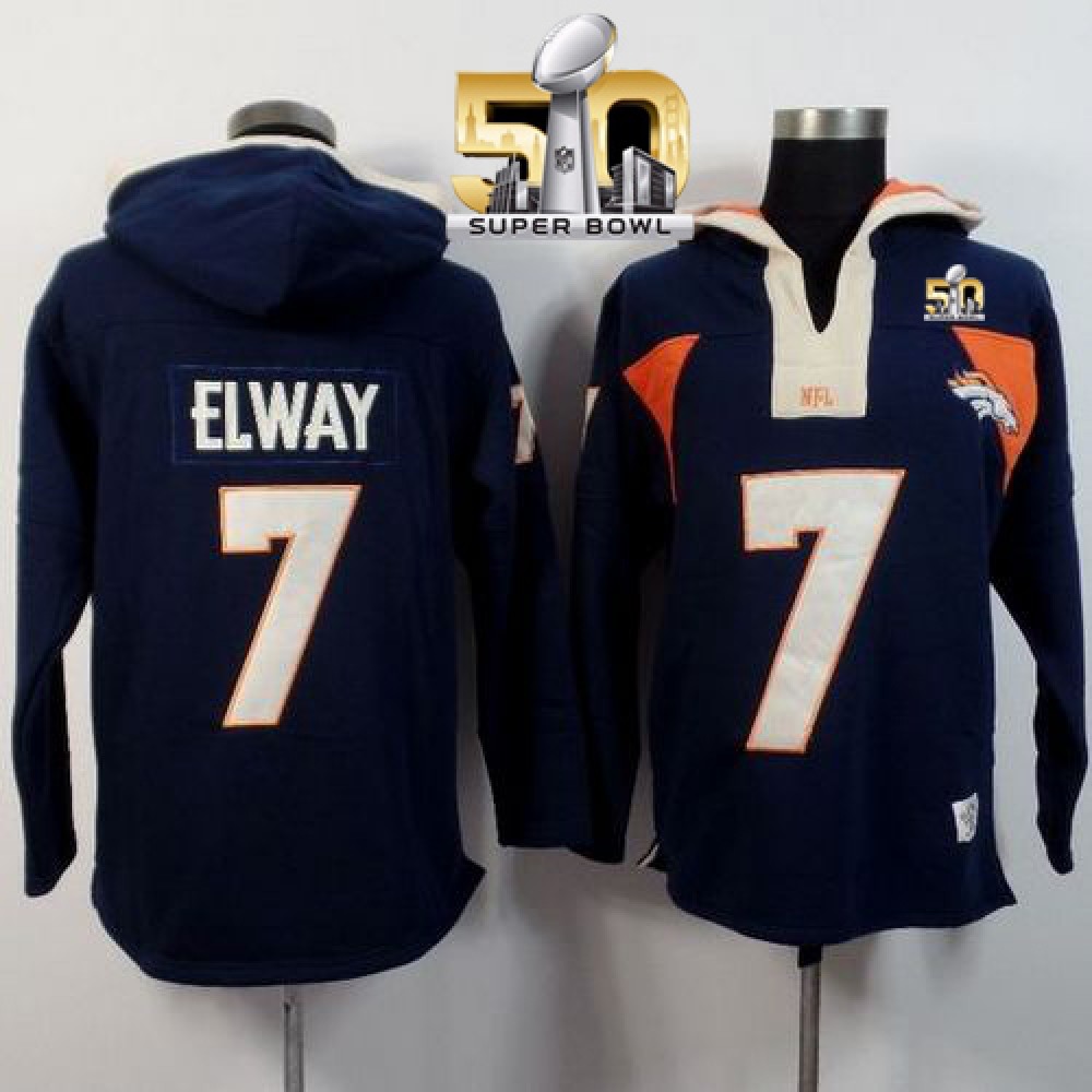 Denver Broncos #7 John Elway Navy Blue Super Bowl 50 Player Winning Method Pullover NFL Hoodie