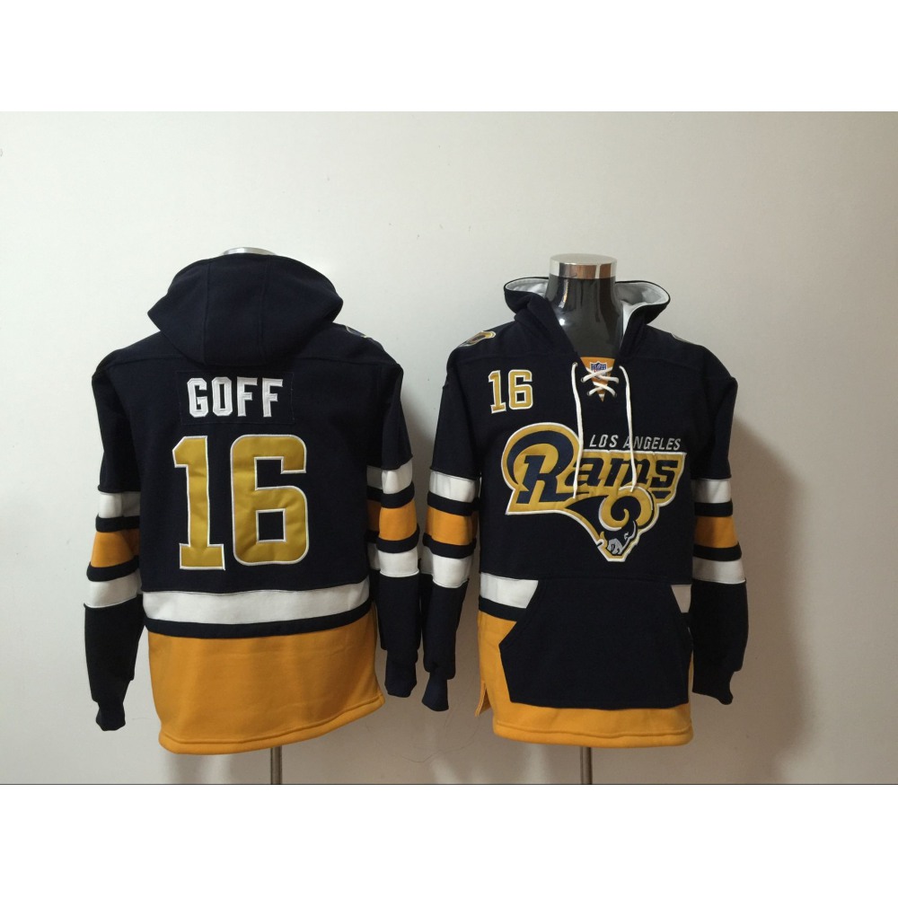 Men's Los Angeles Rams #16 Jared Goff Navy Blue All Stitched NFL Hoodie Sweatshirt