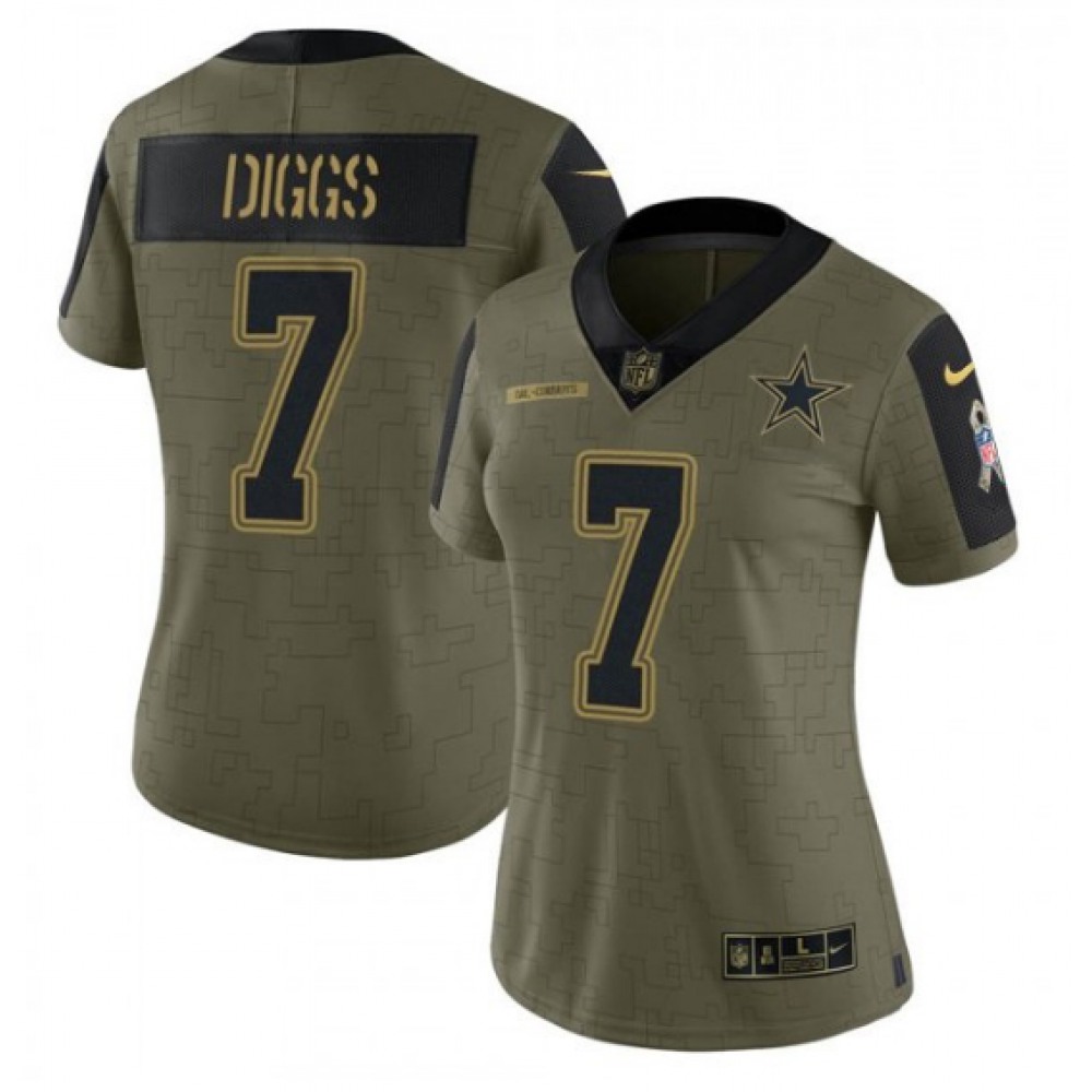Women's Dallas Cowboys #7 Trevon Diggs Olive Salute To Service Limited Stitched Jersey(Run Small)