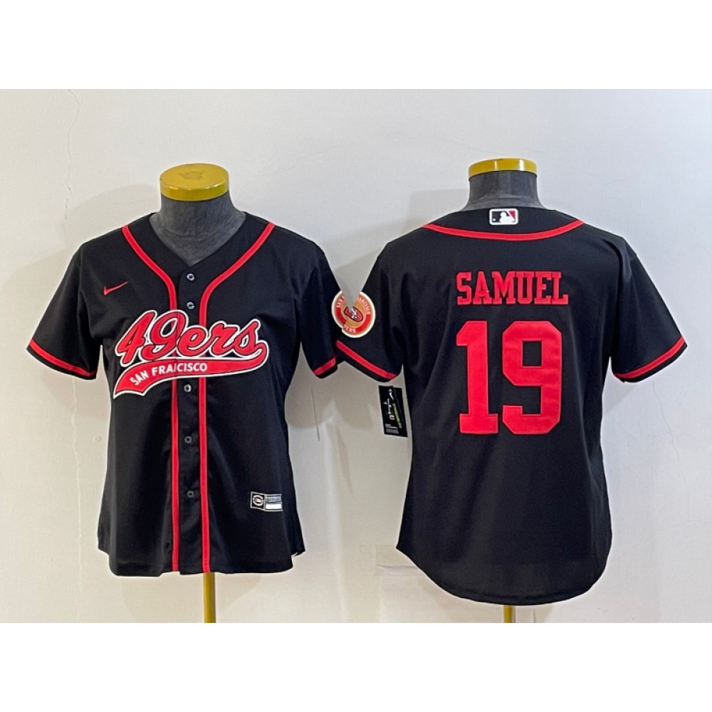 Women's San Francisco 49ers #19 Deebo Samuel Black With Patch Cool Base Stitched Baseball Jersey(Run Small)