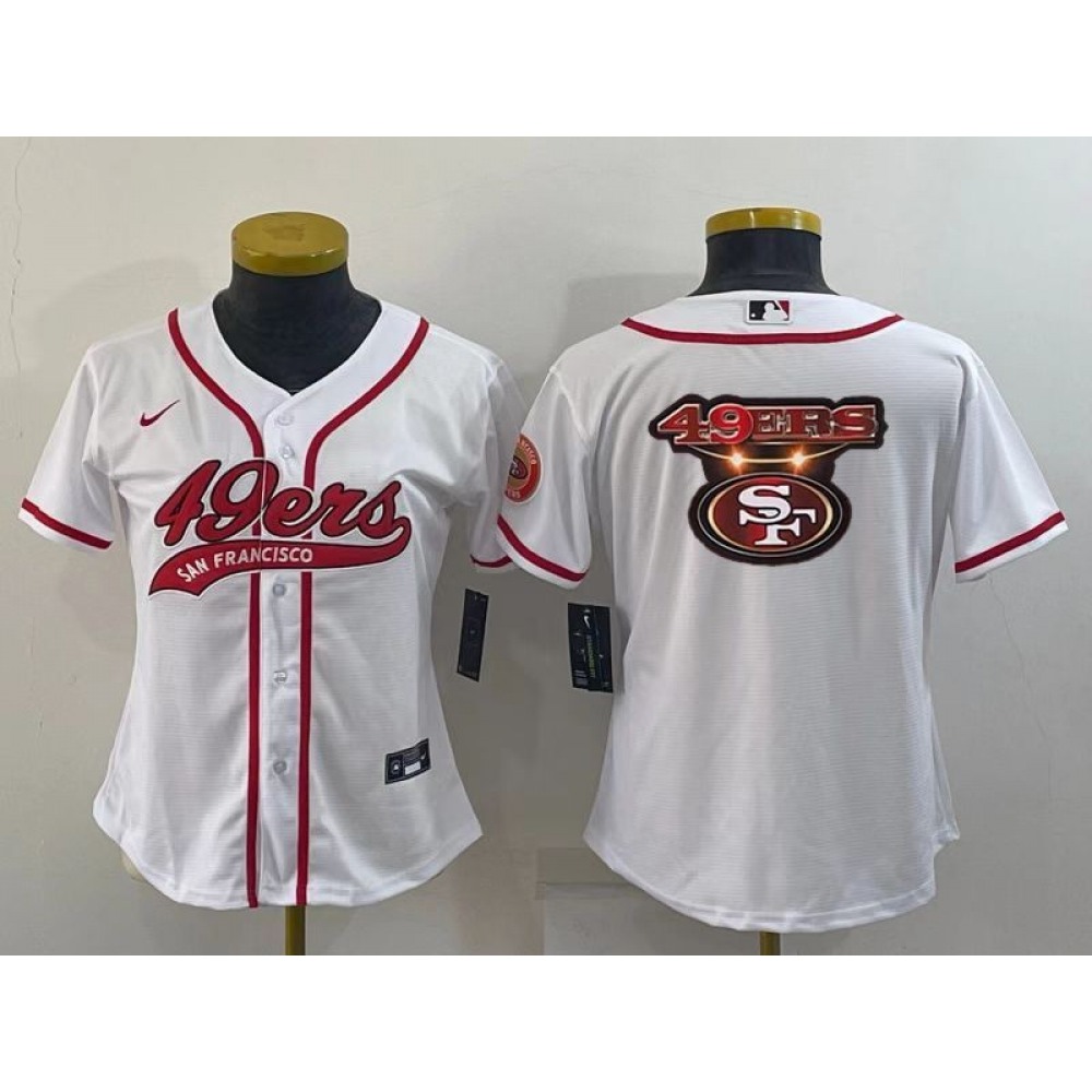 Women's San Francisco 49ers White Team Big Logo With Patch Cool Base Stitched Baseball Jersey(Run Small)