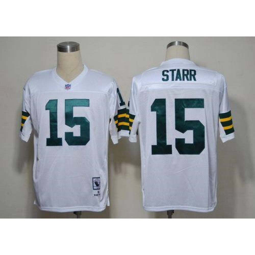 Mitchell & Ness Packers #15 Bart Starr White Stitched Throwback NFL Jersey