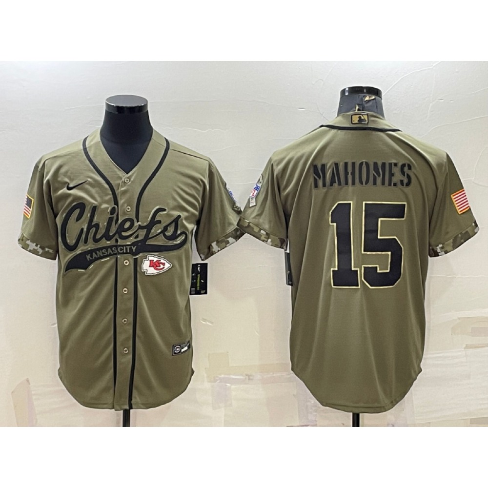 Men's Kansas City Chiefs #15 Patrick Mahomes 2022 Olive Salute to Service Cool Base Stitched Baseball Jersey