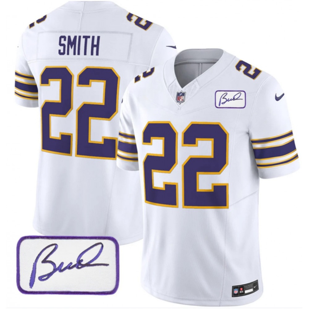 Men's Minnesota Vikings #22 Harrison Smith White 2023 F.U.S.E. Bud Grant patch Vapor Limited Stitched Jersey