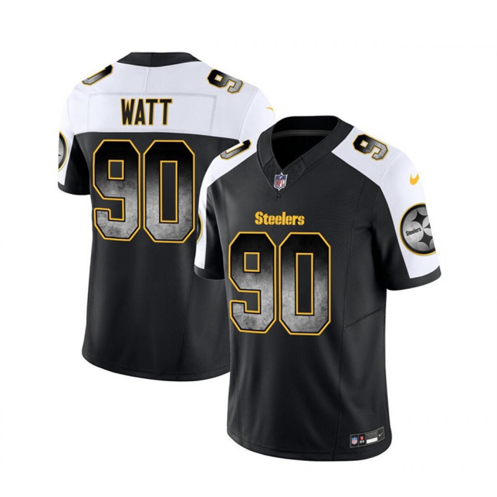 Men's Pittsburgh Steelers #90 T.J. Watt Black/White 2023 F.U.S.E. Smoke Vapor Untouchable Limited Stitched Jersey