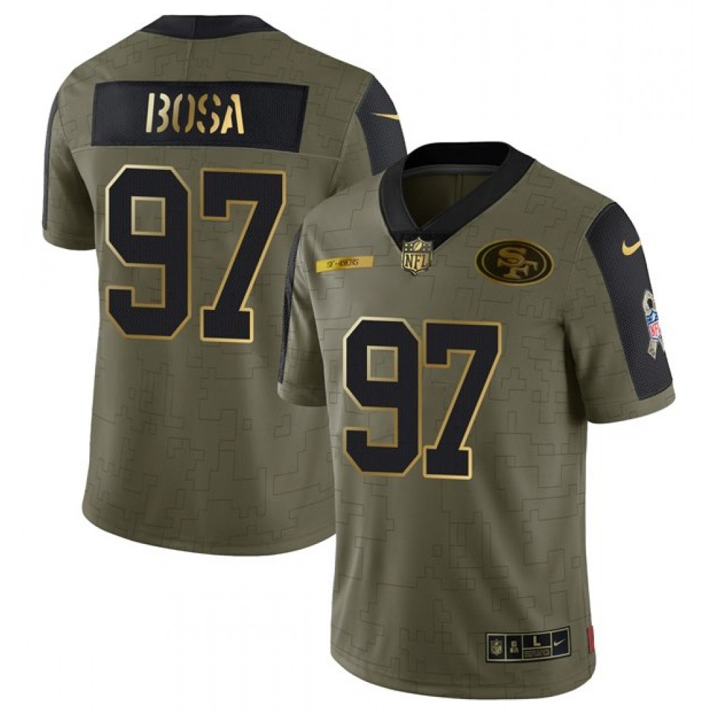 Men's San Francisco 49ers #97 Nick Bosa 2021 Olive Camo Salute To Service Golden Limited Stitched Jersey