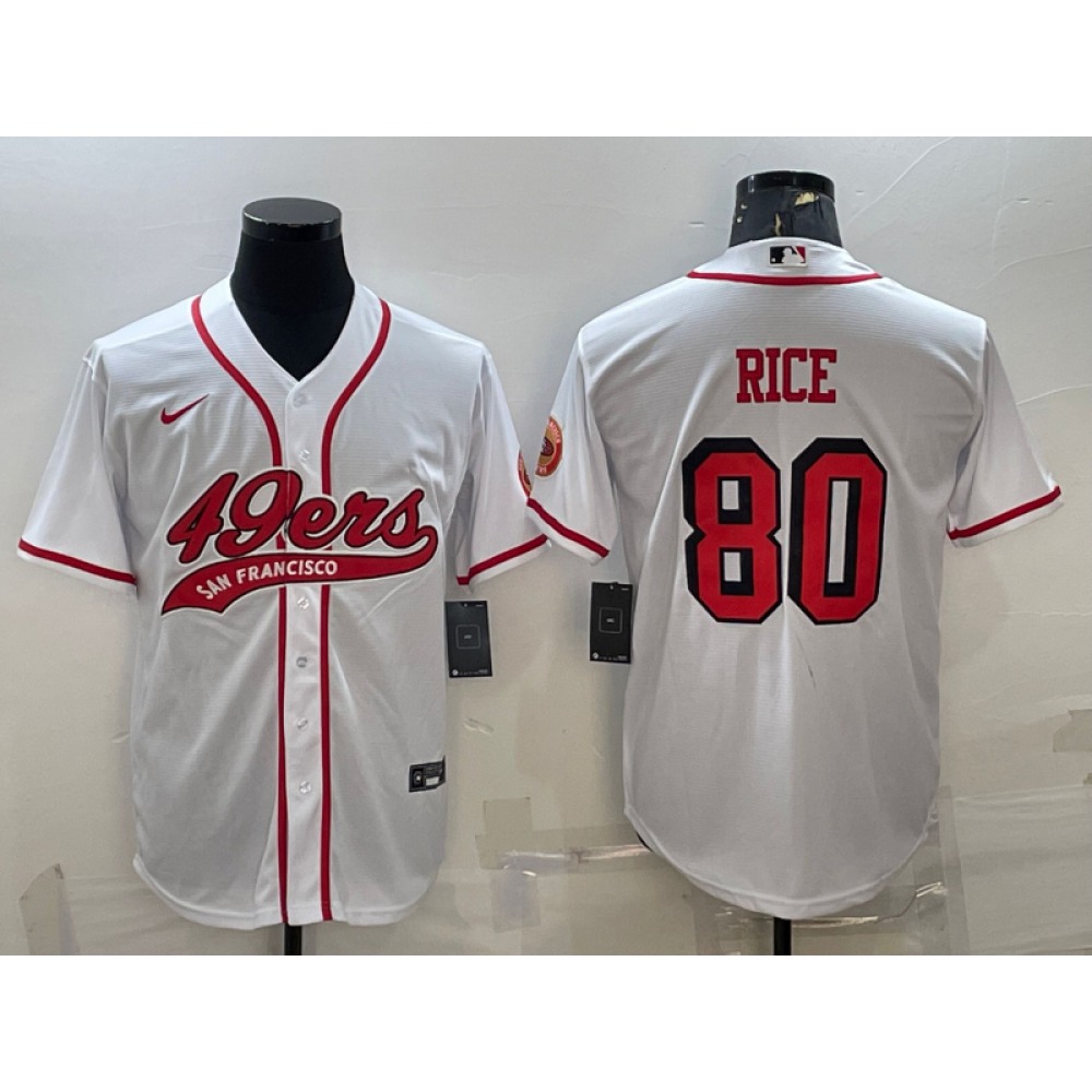Men's San Francisco 49ers #80 Jerry Rice New White With Patch Cool Base Stitched Baseball Jersey