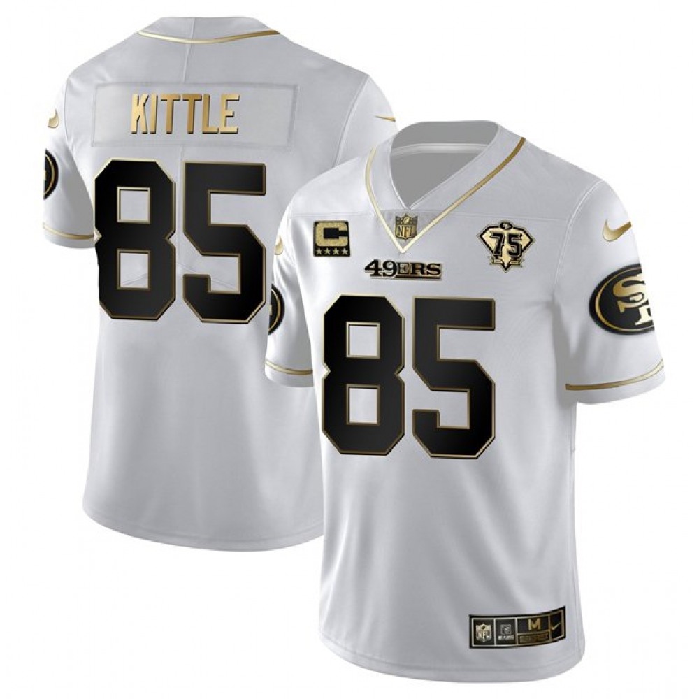Men's San Francisco 49ers George Kittle White Gold 75th Anniversary With C Patch Stitched Jersey