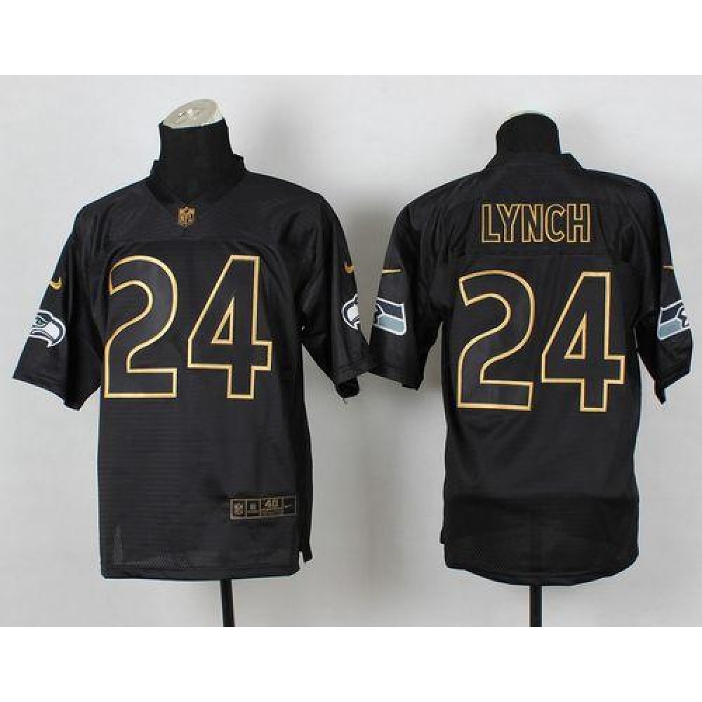 Nike Seahawks #24 Marshawn Lynch Black Gold No. Fashion Men's Stitched NFL Elite Jersey