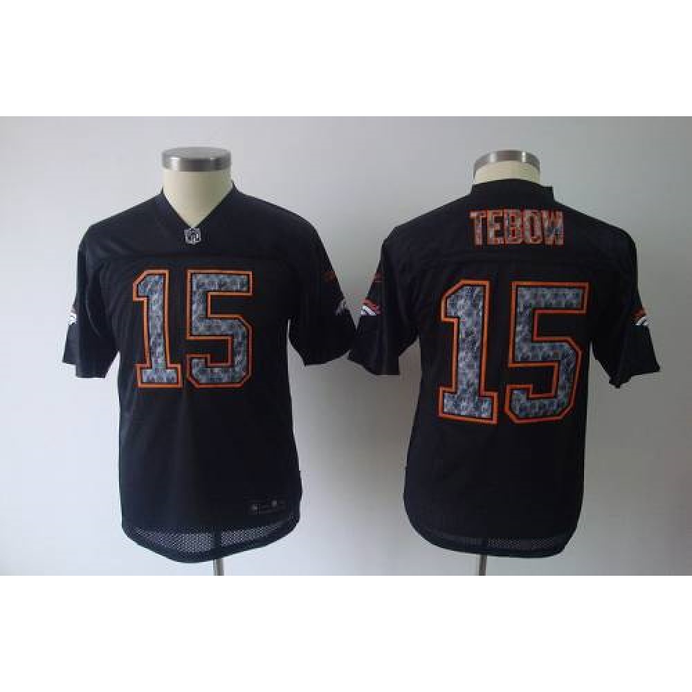 Sideline Black United Broncos #15 Tim Tebow Black Stitched Youth NFL Jersey