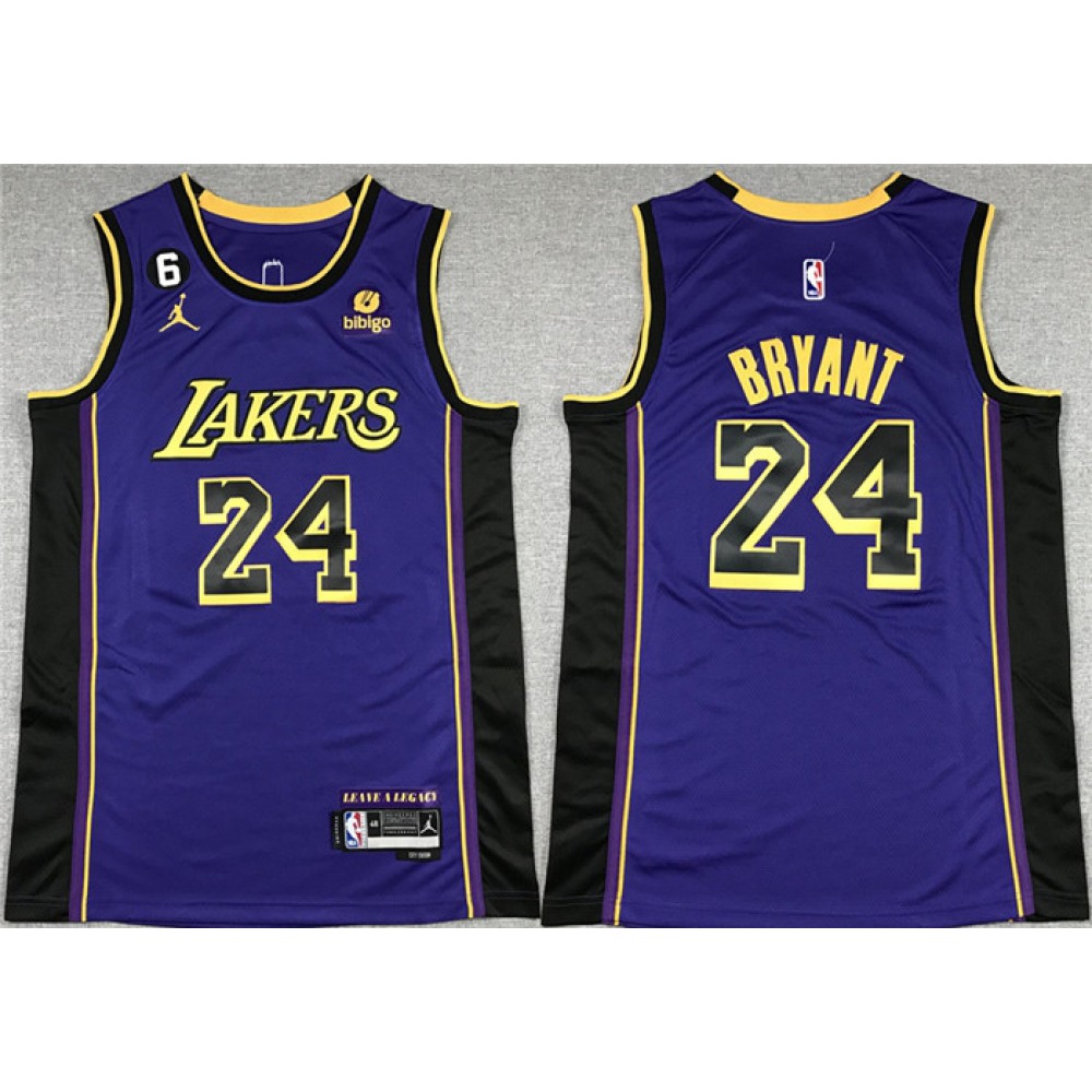 Men's Los Angeles Lakers #24 Kobe Bryant Purple With NO.6 Patch Stitched Basketball Jersey