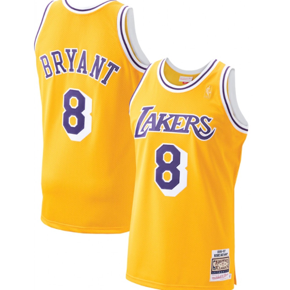 Men's Los Angeles Lakers #8 Kobe Bryant Mitchell & Ness 1996-1997 Gold Hardwood Classics Stitched Jersey
