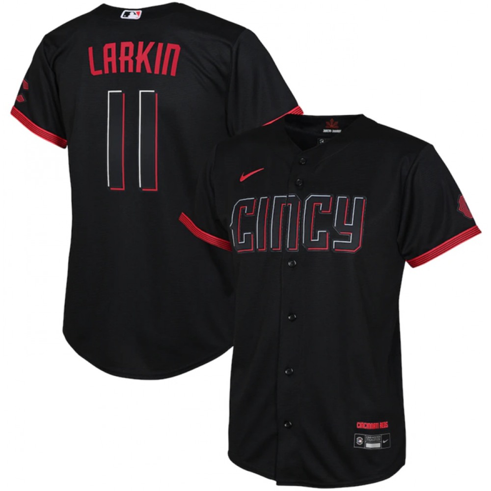Youth Cincinnati Reds #11 Barry Larkin Black 2023 City Connect Stitched Baseball Jersey