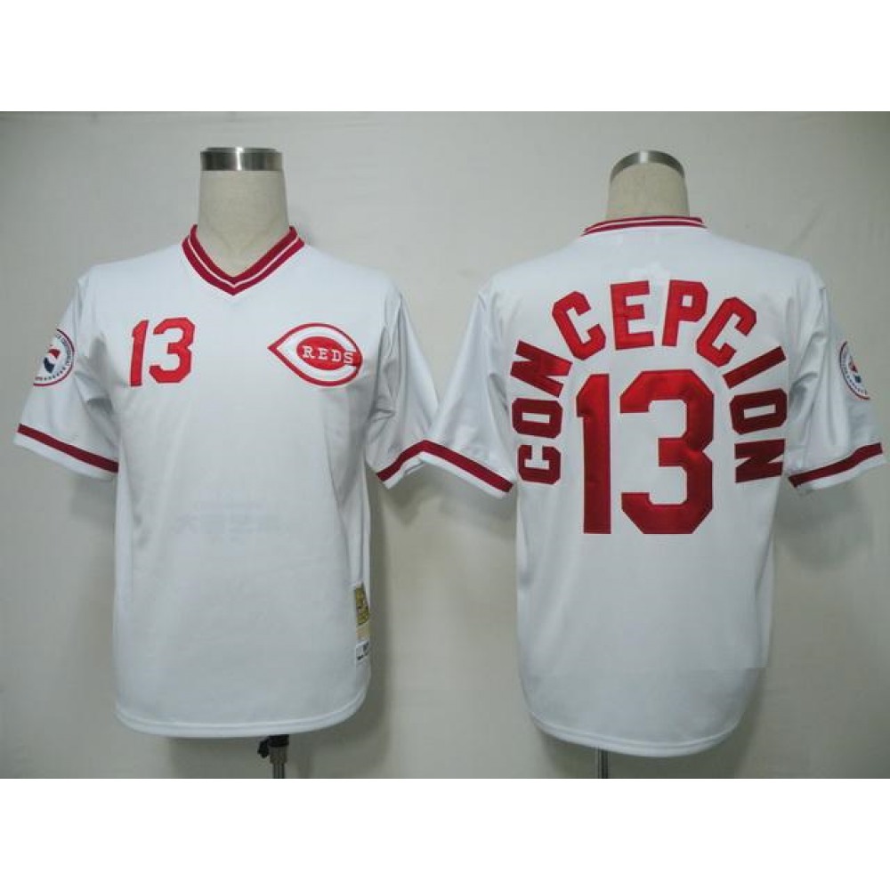 Mitchell and Ness Reds #13 Dave Concepcion White Throwback Stitched MLB Jersey